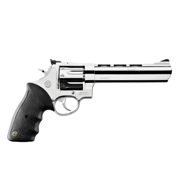 O REVÓLVER TAURUS 838 possui capacidade de 8 tiros, calibre .38SPL e cano de 6.5" vértice de mira ajustável e cano ventilado.