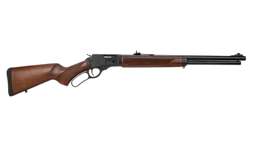 Construída com receptáculo em aço e coronha em madeira de boa densidade, a Rio Grande privilegia rigidez estrutural e conforto de empunhadura. O cano de 20 polegadas e o comprimento total de 968 mm propiciam estabilidade no disparo e ajudam a controlar o recuo do calibre .357 Magnum.